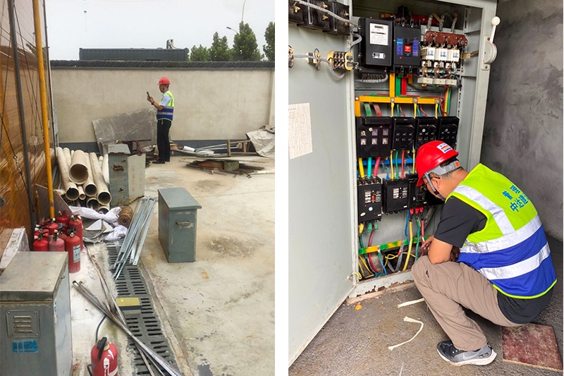 3. 施工用電:未落實檢查及張貼安全標識;加工設備缺少開關箱;動力箱內違規(guī)接線;總配房內設施未設置齊全等。