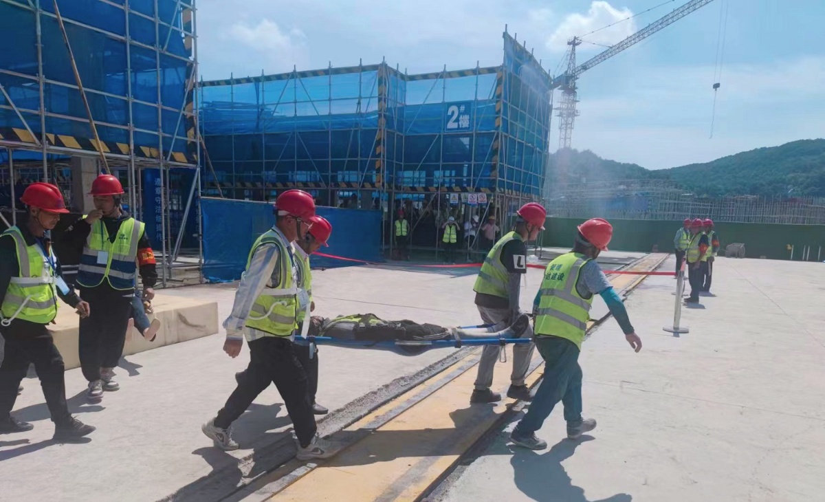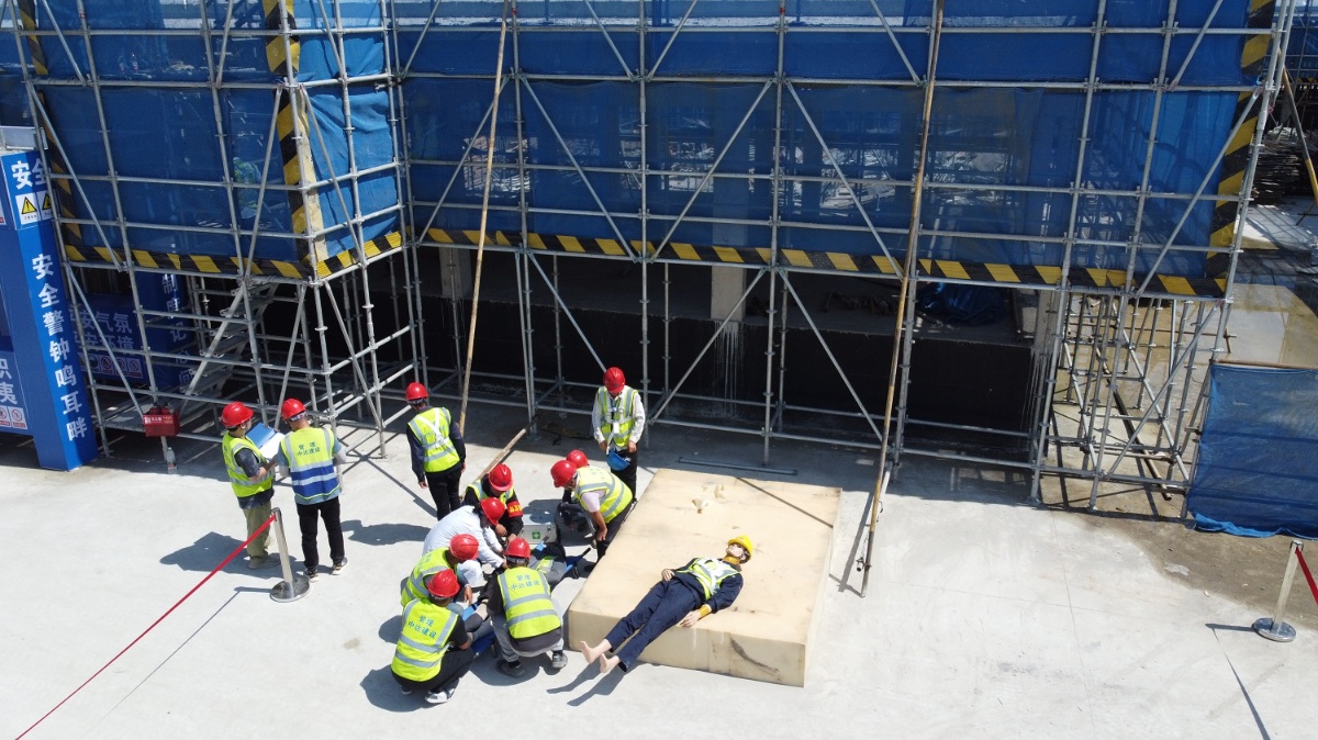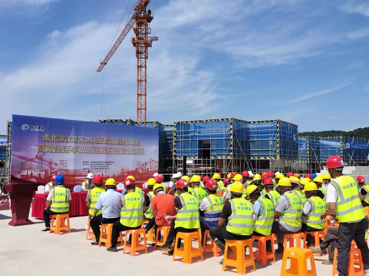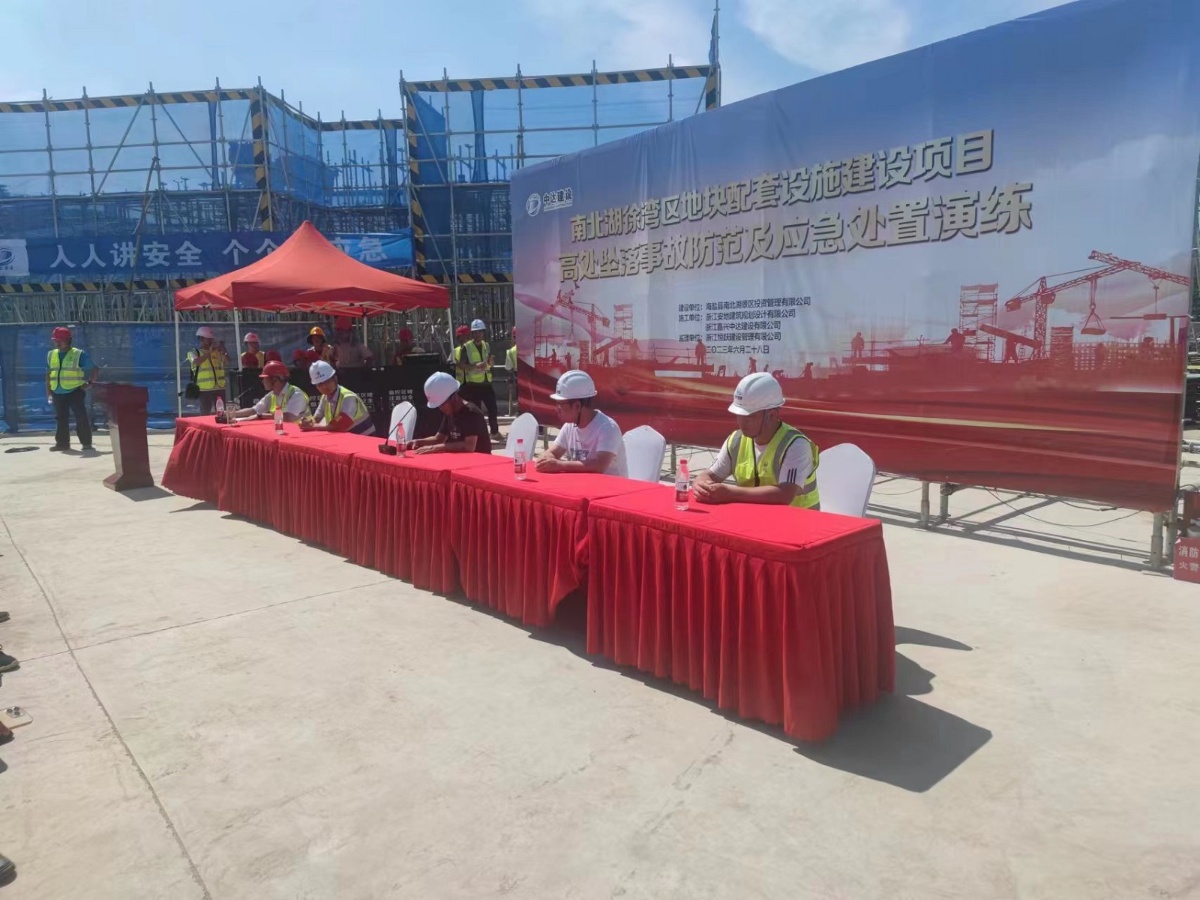 為貫徹落實(shí)上級主管部門關(guān)于做好安全生產(chǎn)的工作部署,積極響應(yīng)“人人講安全,個(gè)個(gè)會(huì)應(yīng)急”的活動(dòng)主題,提升全員應(yīng)對突發(fā)事件和風(fēng)險(xiǎn)防控能力。6月28日下午,中達(dá)建設(shè)承建的南北湖徐灣區(qū)地塊配套設(shè)施建設(shè)項(xiàng)目組織開展“高處墜落事故防范及處置”應(yīng)急演練。參加演練觀摩的有海鹽縣南北湖景區(qū)投資管理有限公司、浙江恒躍建設(shè)管理有限公司、浙江安地建筑規(guī)劃設(shè)計(jì)有限公司現(xiàn)場代表以及浙江嘉興中達(dá)建設(shè)有限公司各項(xiàng)目負(fù)責(zé)人、安全管理部門等100余人。